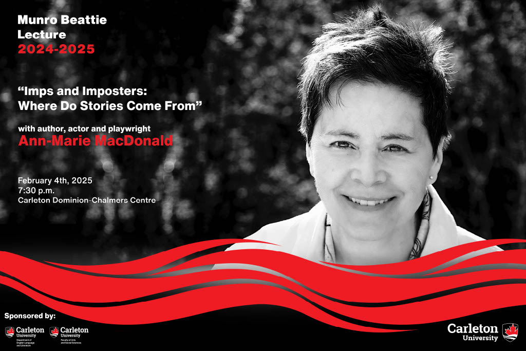 The Office of the Dean of the Faculty of Arts and Social Sciences and the Department of English Language and Literature invite you to join us for the 2024-2025 Munro Beattie Lecture, “Imps and Imposters: Where Do Stories Come From” with author, actor, and playwright, Ann-Marie MacDonald. It will take place on February 4, 7:30pm, at the Carleton Dominion-Chalmers Centre.