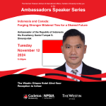 The Norman Paterson School of International Affairs at Carleton University invites you to the second event of our Ambassadors Speaker Series for 2024-2025 featuring the Ambassador of the Republic of Indonesia, His Excellency Daniel Tumpal S. Simanjuntak, with the topic: ‘Indonesia and Canada: Forging Stronger Bilateral Ties for a Shared Future‘
