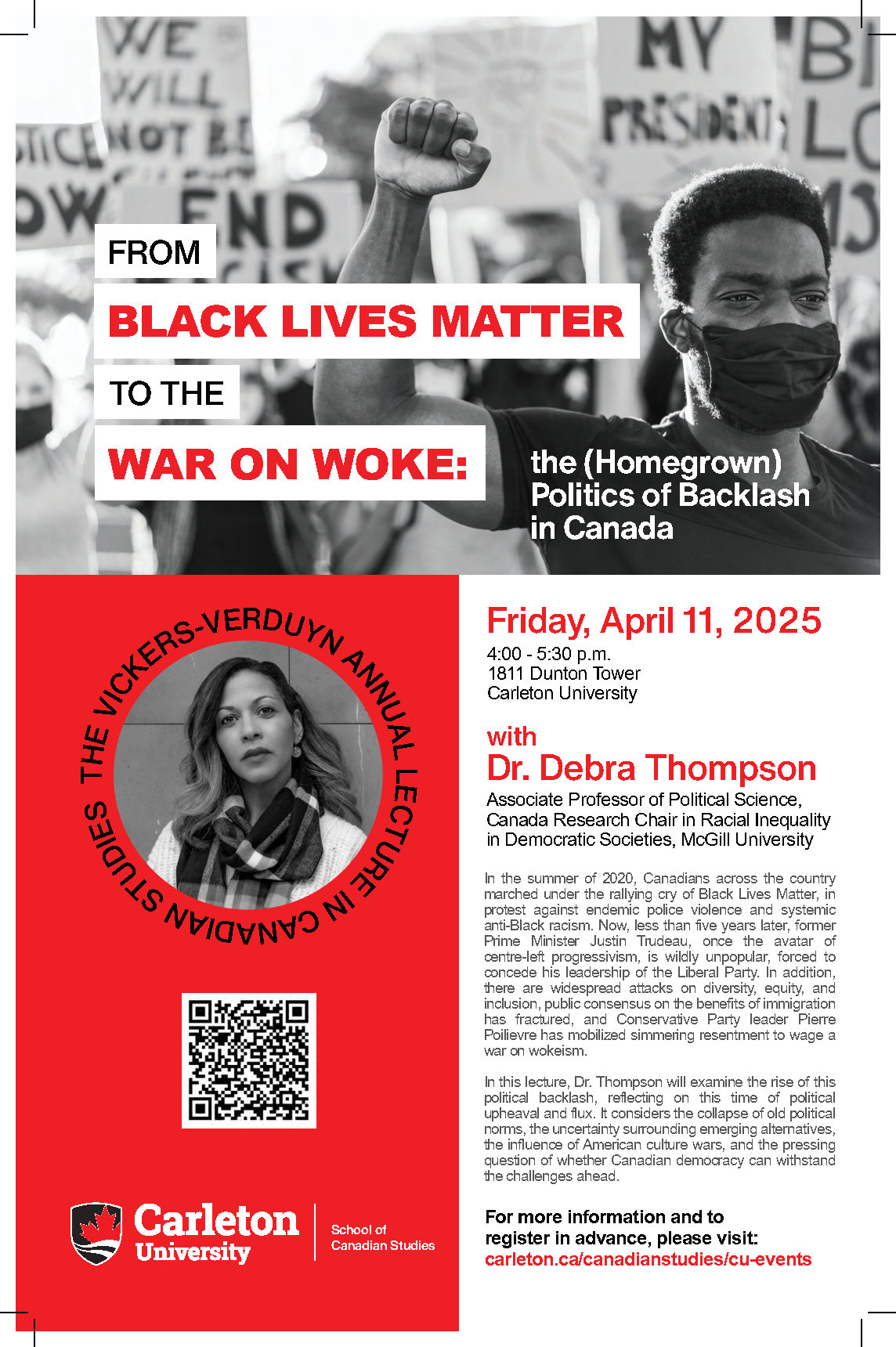 Annual Vickers-Verduyn Lecture: From Black Lives Matter to the War on Woke: the (Homegrown) Politics of Backlash in Canada with Dr. Debra Thompson