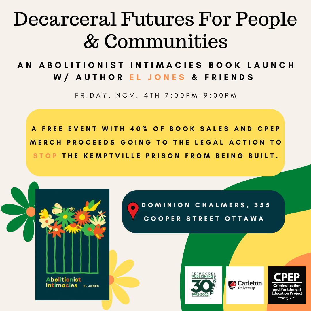 Dr. El Jones is a professor of Political and Canadian Studies at Mount Saint Vincent University, prison justice and abolition activist, former Halifax poet laureate, and author of the new book Abolitionist Intimacies (Fernwood, 2022). On Friday night November 4 at 7 pm, she will be giving a free public talk and poetry reading in downtown Ottawa at Carleton’s Dominion Chalmers Centre, 355 Cooper St.
