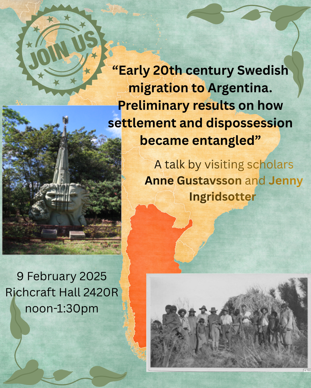 Early 20th century Swedish migration to Argentina. Preliminary results on how settlement and dispossession became entangled – a talk by Anne Gustavsson and Jenny Ingridsotter