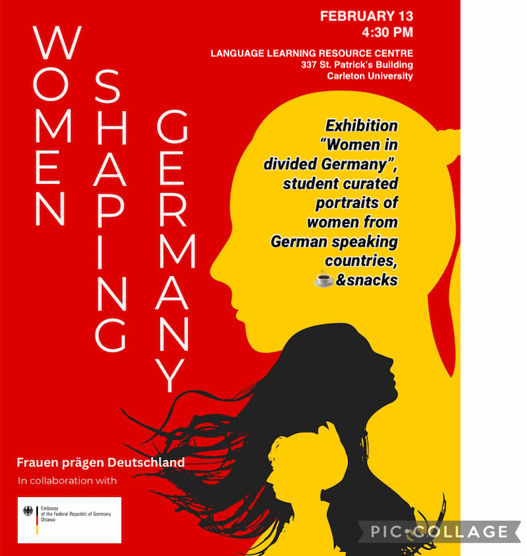 Join us for a celebration of “Women Shaping Germany” featuring “Women in Divided Germany”, an exhibit by media and cultural scientist, Clara Marz, presented courtesy of the Embassy of Germany in Ottawa. The event will also feature portraits of women from German-speaking countries curated by students in Carleton German classes.