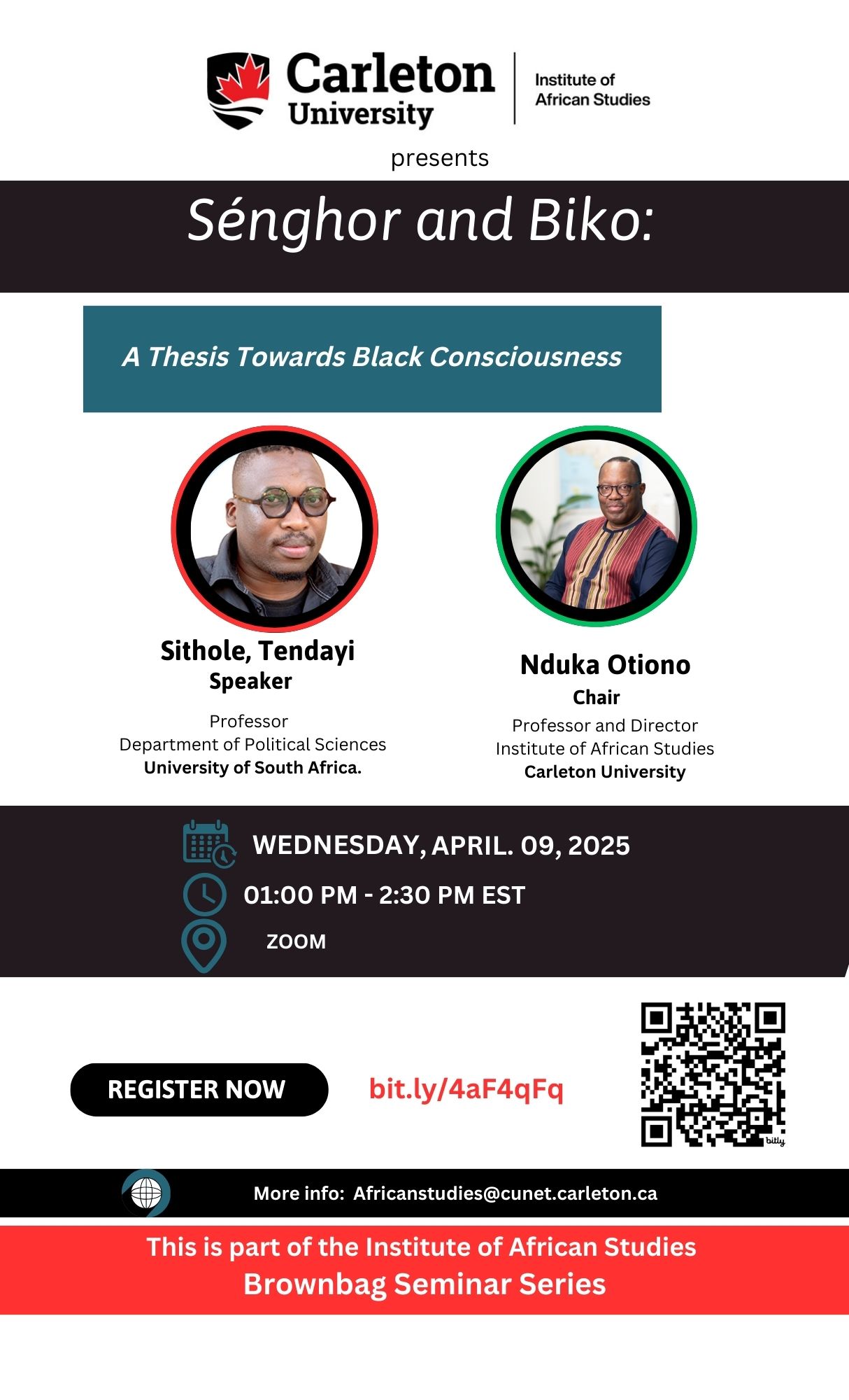Join us for the Brownbag Seminar titled “Sénghor and Biko: A Thesis Towards Black Consciousness” by Professor Tendayi Sithole (Department of Political Sciences, UNISA). This seminar will explore the intersection of Negritude and Black Consciousness, analyzing how the concept of the thesis contributes to Black Consciousness by examining the relationship between Senghor and Biko.
