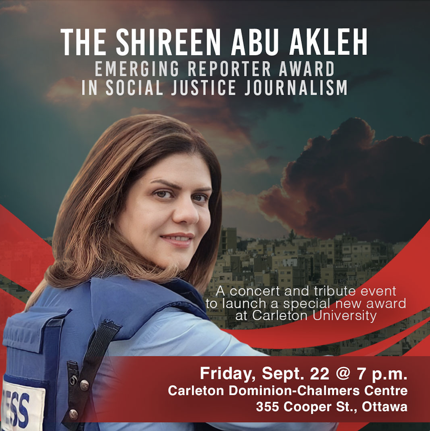 A special event will be held on Friday, Sept. 22 at the Carleton Dominion-Chalmers Centre in downtown Ottawa as a tribute to Abu Akleh and to launch the award. (https://bit.ly/ShireenAbuAklehAward). The event will feature tributes by Abu Akleh’s friends, family and colleagues and a concert by renowned oud player Abdul-Wahab Kayyali and cellist Sheila Hannigan.