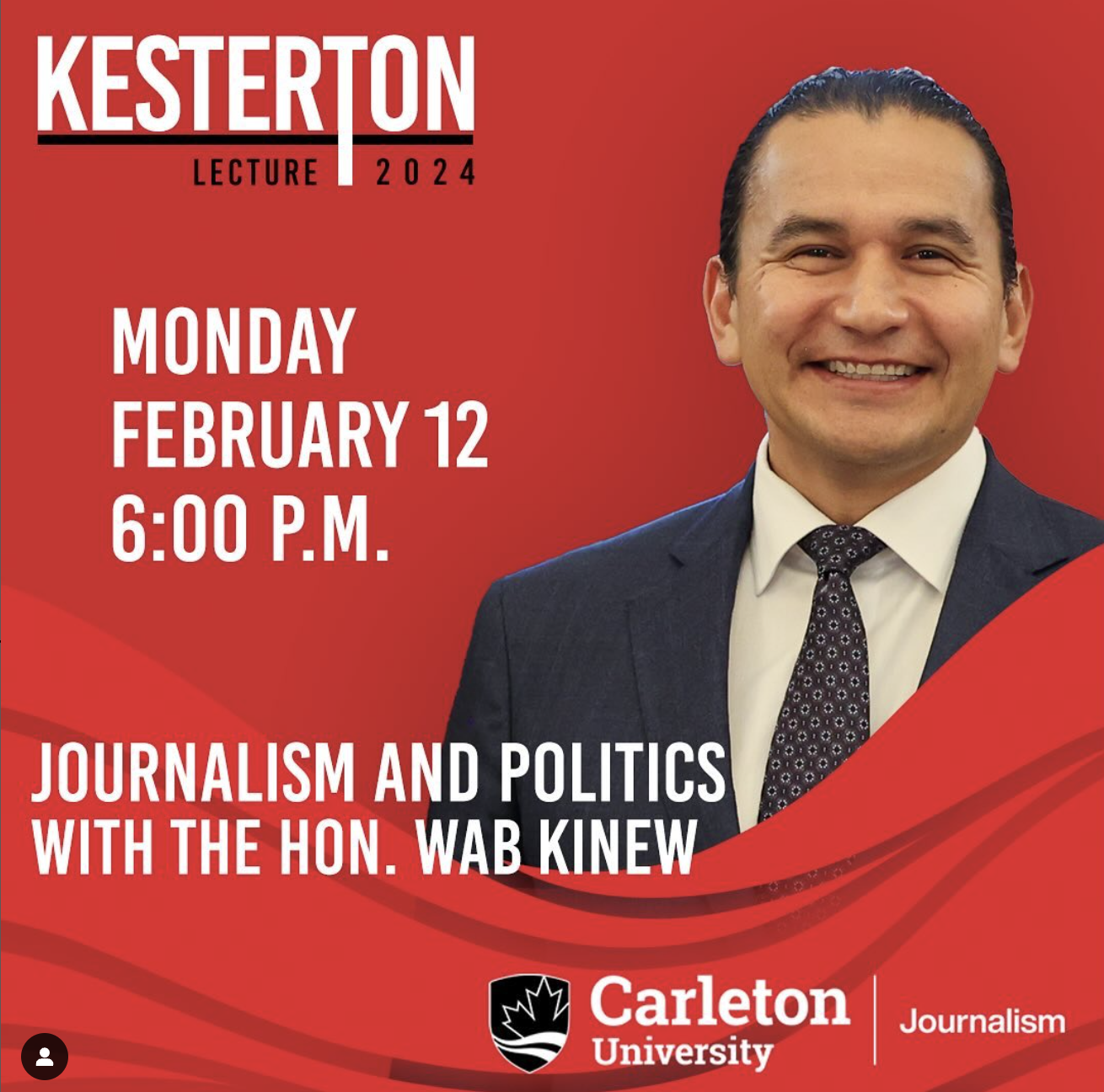 The School of Journalism and Communication is pleased to announce that The Honourable Wab Kinew, Premier of Manitoba, will deliver the 2024 Kesterton Lecture at the Carleton Dominion Chalmers Centre in downtown Ottawa.